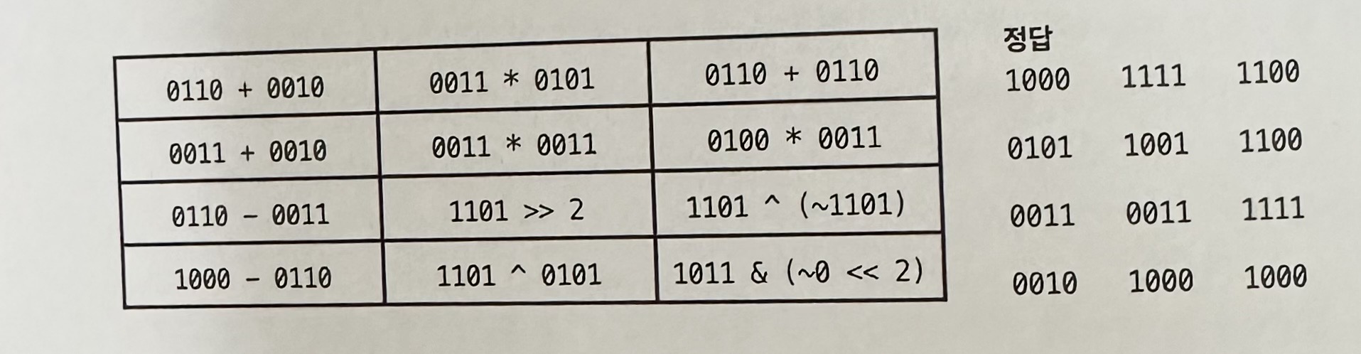 - 연산자 : 덧셈 연산자만을 사용하여 정수에 대한 곱셈, 뺄셈, 나눗셈 연산을 수행하는 메서드를 작성하라