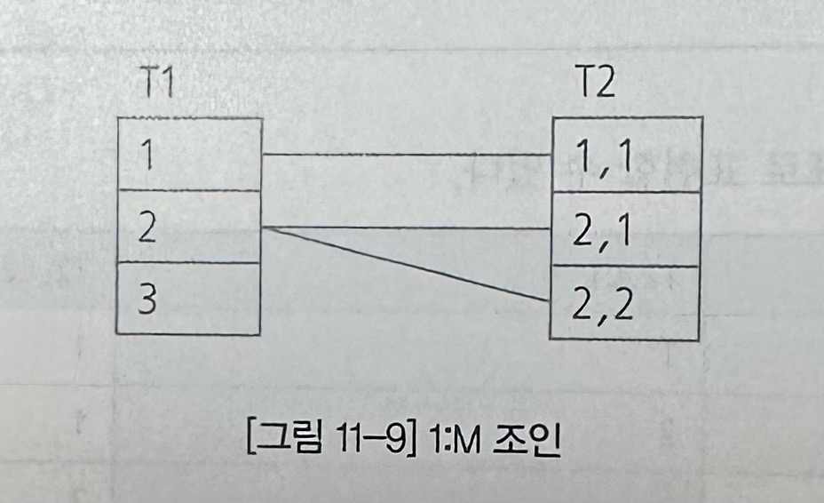 예) t1, t2가 1:M 관계라면 조인 차수는 1:M이다.