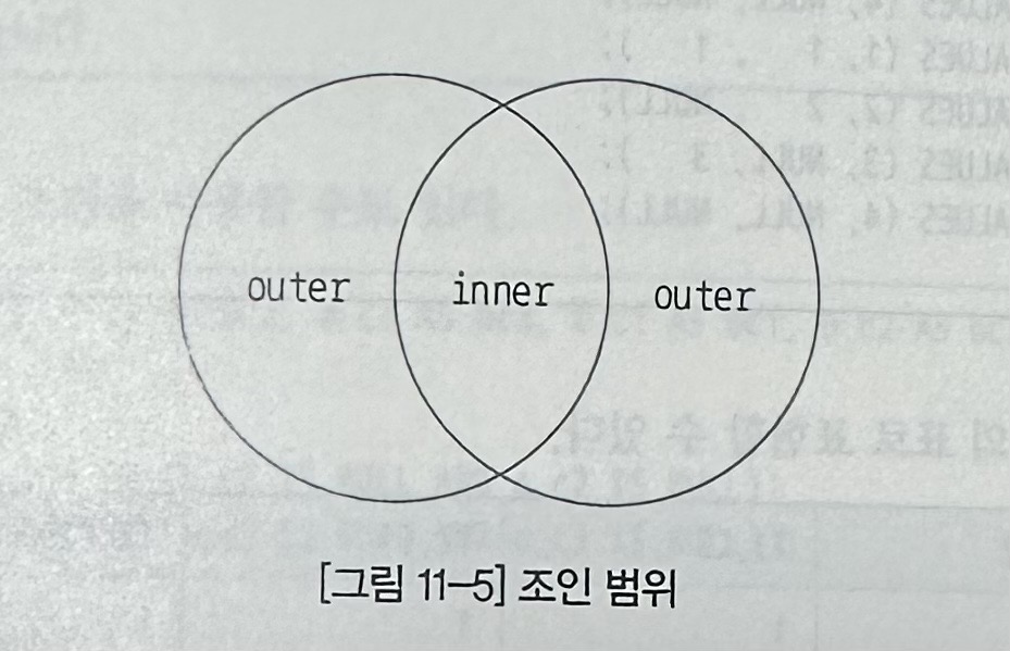 조인 범위는 inner, outer로 구분할 수 있다.