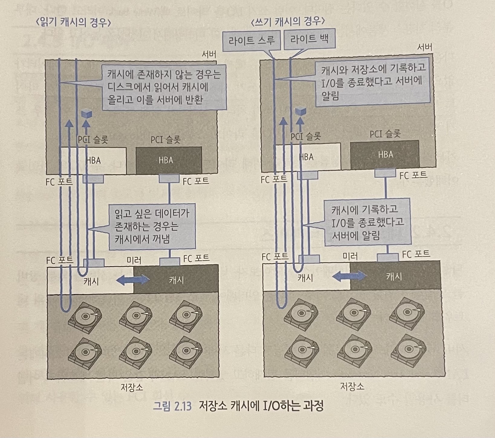 - 캐시와 HDD에 모두 액세스 하는 I/O : 읽기 시에 캐시에 데이터가 없으면 읽기 처리를 위해 액세스한다. 쓰기 시에는 캐시와 디스크를 모두 읽어서 Write Back과 비교하고, 더 확실한 쪽을 쓰기 처리를 실시하기 위해 액세스 한다. 이런 쓰기를 Write Through라고 한다.