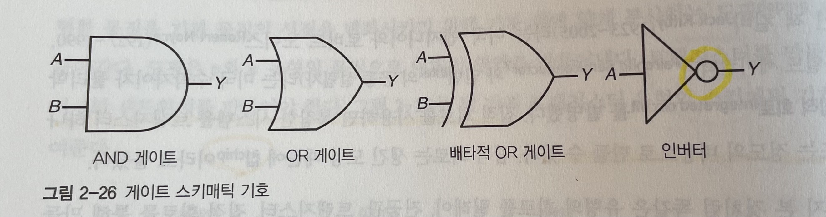 논리 게이트에서 가장 단순한 회로는 NAND(not and), NOR(not or) 이다. AND, OR은 NAND, NOR 회로 출력에 트랜지스터를 덧붙여서 출력을 반전시켜야 하기 때문에 더 비싸고 반응 속도도 더 느리며, 전력도 더 많이 소모된다.