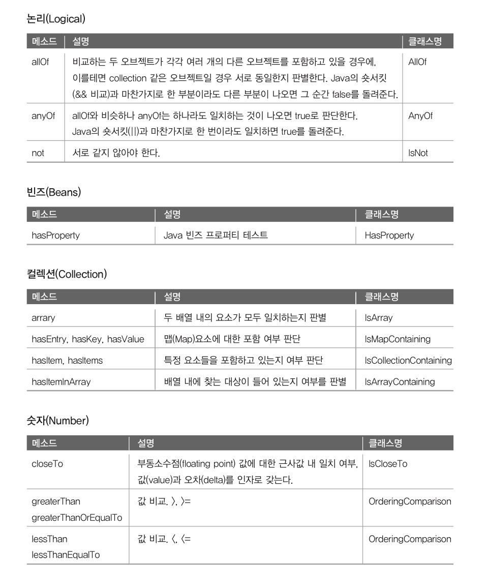 - org.hamcrest.number : 수를 비교하기 위한 Matcher