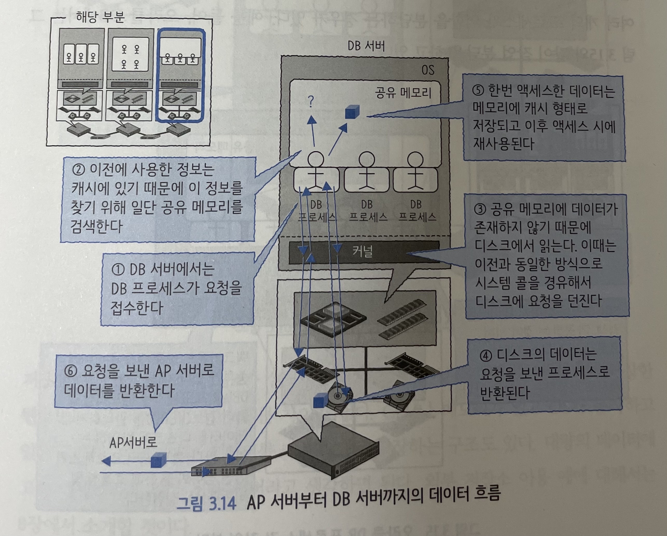 DB 서버는 데이터 저장 창고다. 관리 대상 데이터가 방대하기 때문에 얼마나 효율적으로 액세스하는가가 중요하다. 대부분은 서버 메모리에 캐시가 있는지 먼저 확인한다. 캐시가 없으면 디스크에 액세스해서 필요한 데이터를 가지고 온다.
