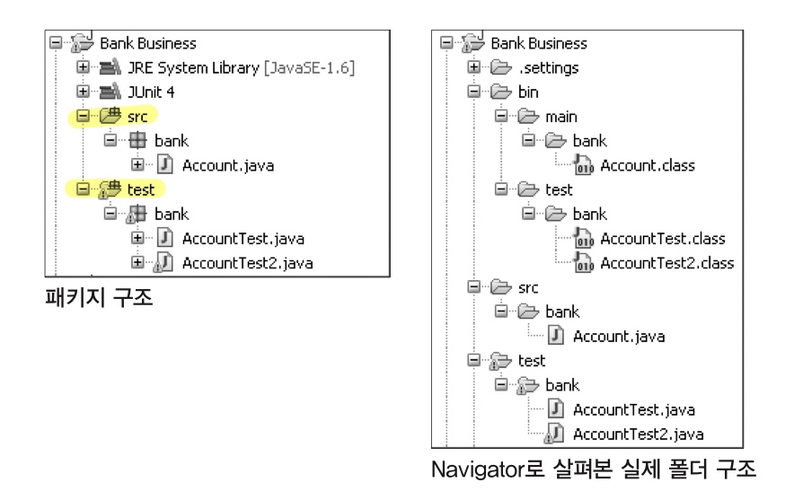 예) src/bank - 제품코드 클래스, src/bank/test - 테스트 케이스 클래스