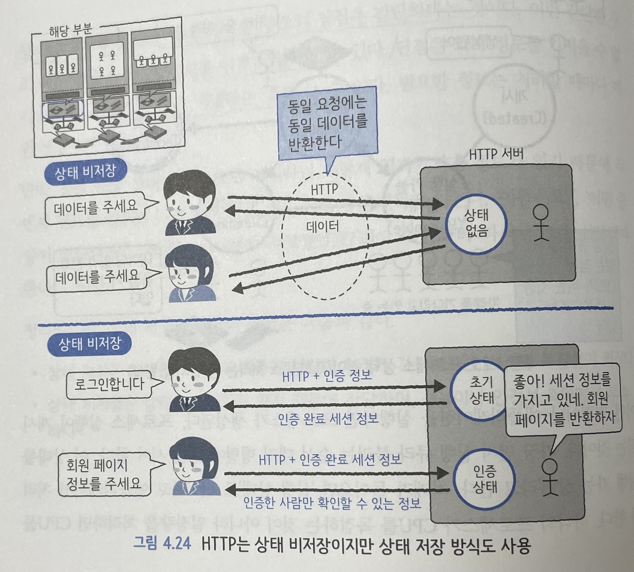 HTTP는 기본적으로 상태 비저장 프로토콜이다. 따라서 매번 같은 데이터를 반환한다. 그래서 HTTP에서는 세션이라는 개념을 사용해서 상태유지 구조를 구현하고 있다.