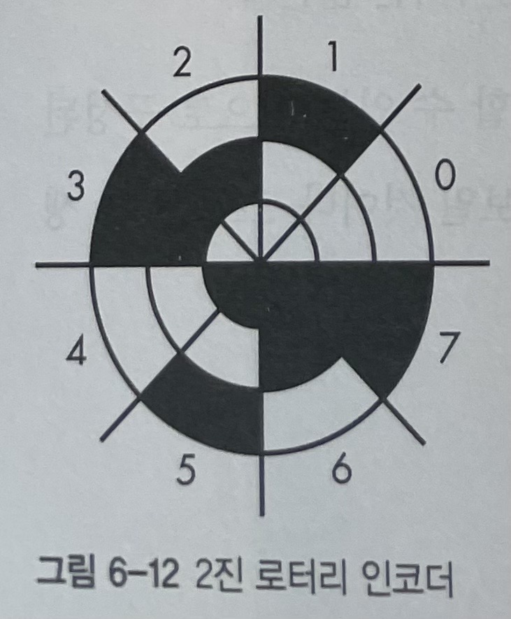 센서를 읽어서 모터, 바퀴 같은 회전축의 위치를 알아내야 하는 경우가 있다. 이 때 회전축의 스위치를 넣거나 광센서가 읽을 수 있는 흰색과 검은색 점을 사용해 위치를 알아낼 수 있다. 어떤 접근 방법을 사용하든 축의 위치를 2진수로 인코딩해야 한다.
