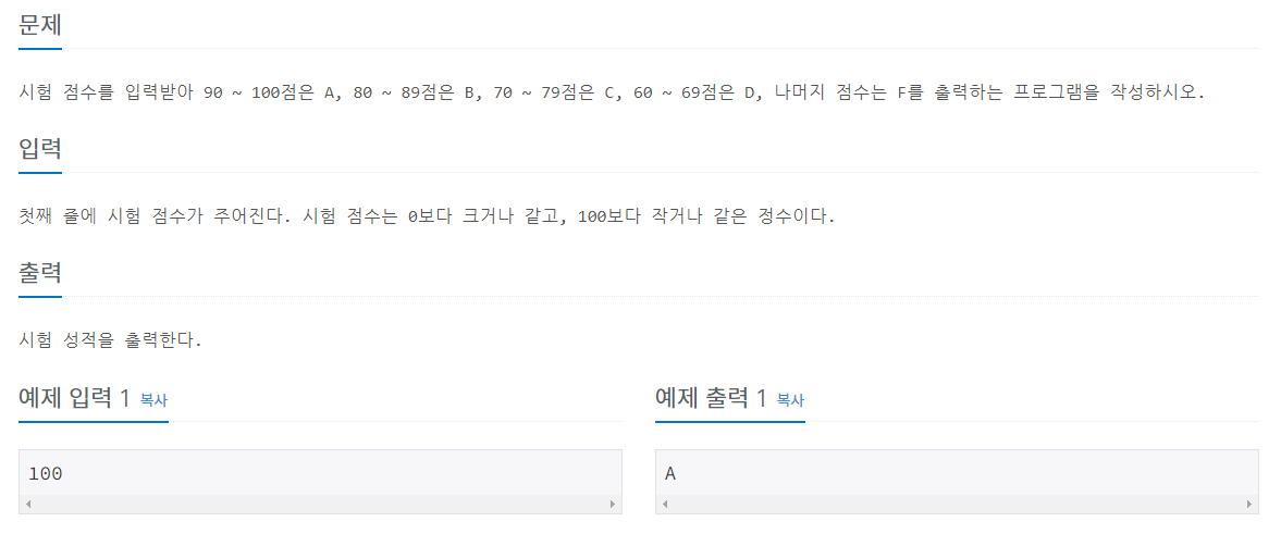 if(score >= 90 && score <= 100) result = "A";