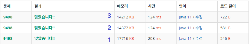 1)Scanner를 사용한 방식 -> 208ms 시간 / 17716KB 메모리