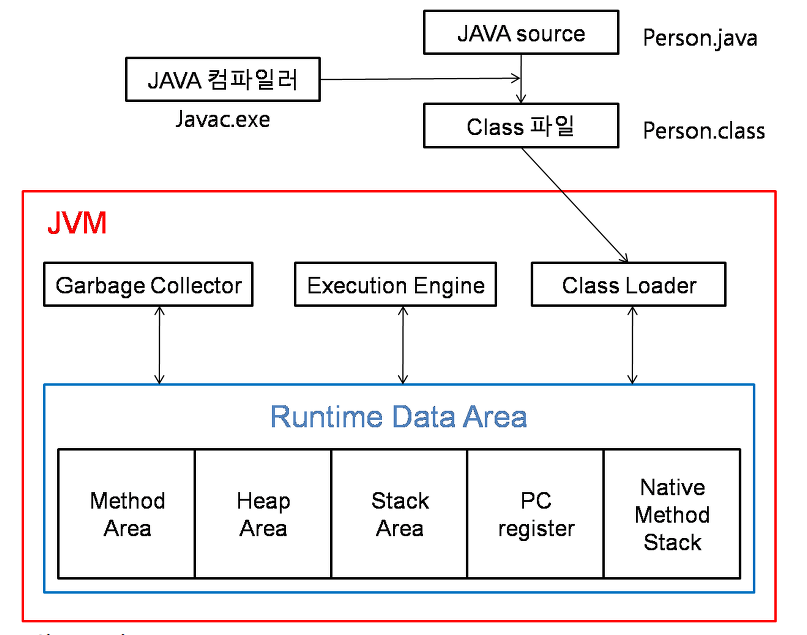 - Class Loader : JVM 내로 클래스 파일을 로드하고, 링크를 통해 배치하는 작업을 수행하는 모듈이다. 런타임 시에 동적으로 클래스를 로드한다.