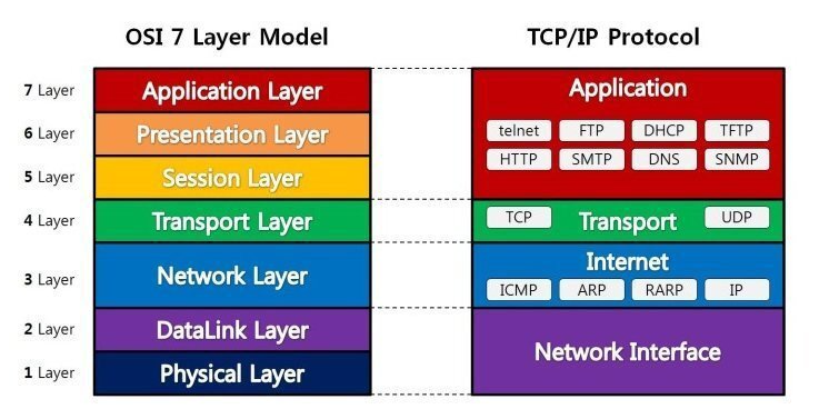 프로토콜을 기능별로 나눈 것으로 각 계층은 하위 계층의 기능만 이용하고, 상위 계층에게 기능을 제공한다.