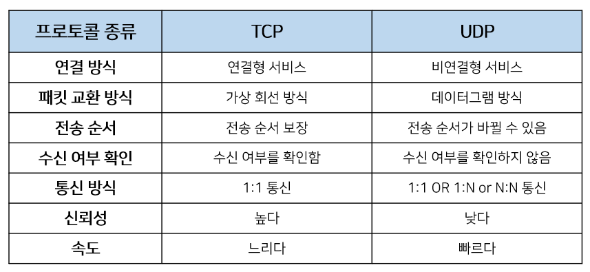 따라서 TCP는 신뢰성이 중요한 파일 교환 같은 경우에 쓰이고 UDP는 실시간성이 중요한 스트리밍에 자주 사용된다.