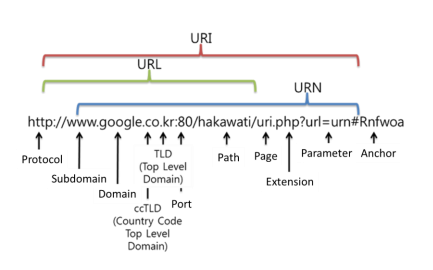 URL : 프로토콜을 포함하고, 네트워크 상에서 웹 페이지, 이미지, 동영상 등의 파일이 위치한 정보를 나타낸다. 일반적으로 사이트 도메인을 자주 의미한다.